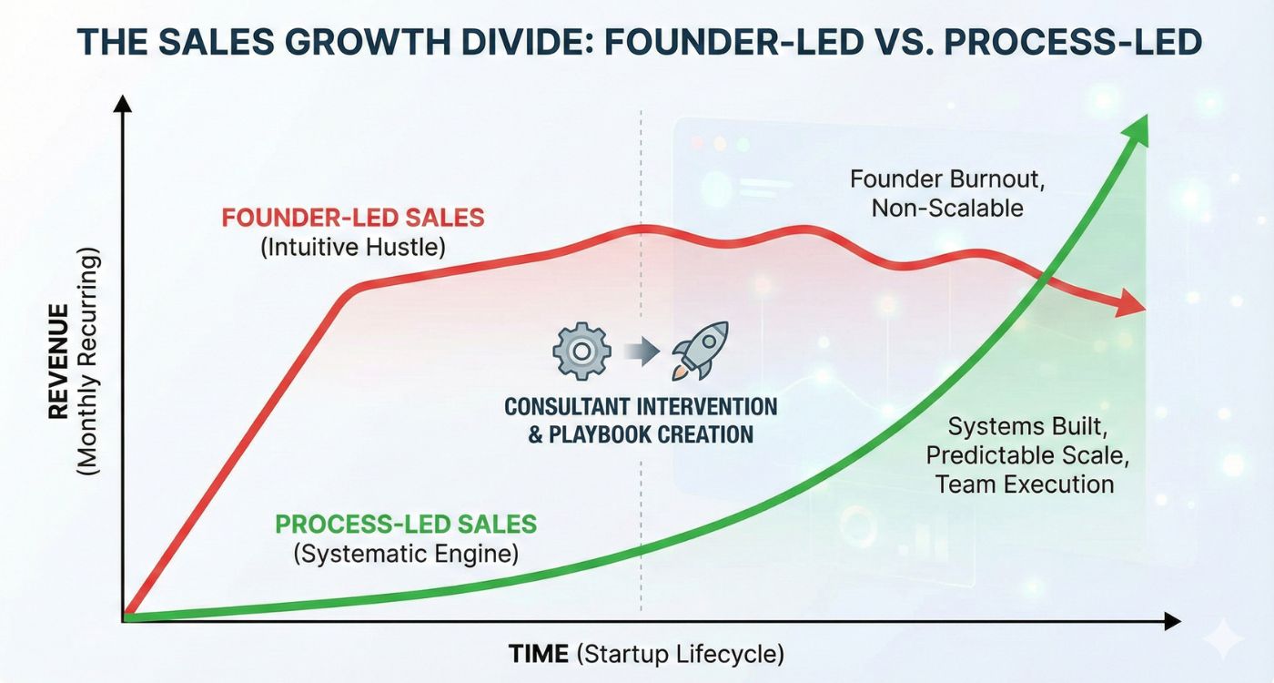 Growth chart comparing founder-led sales vs sales consultant strategy